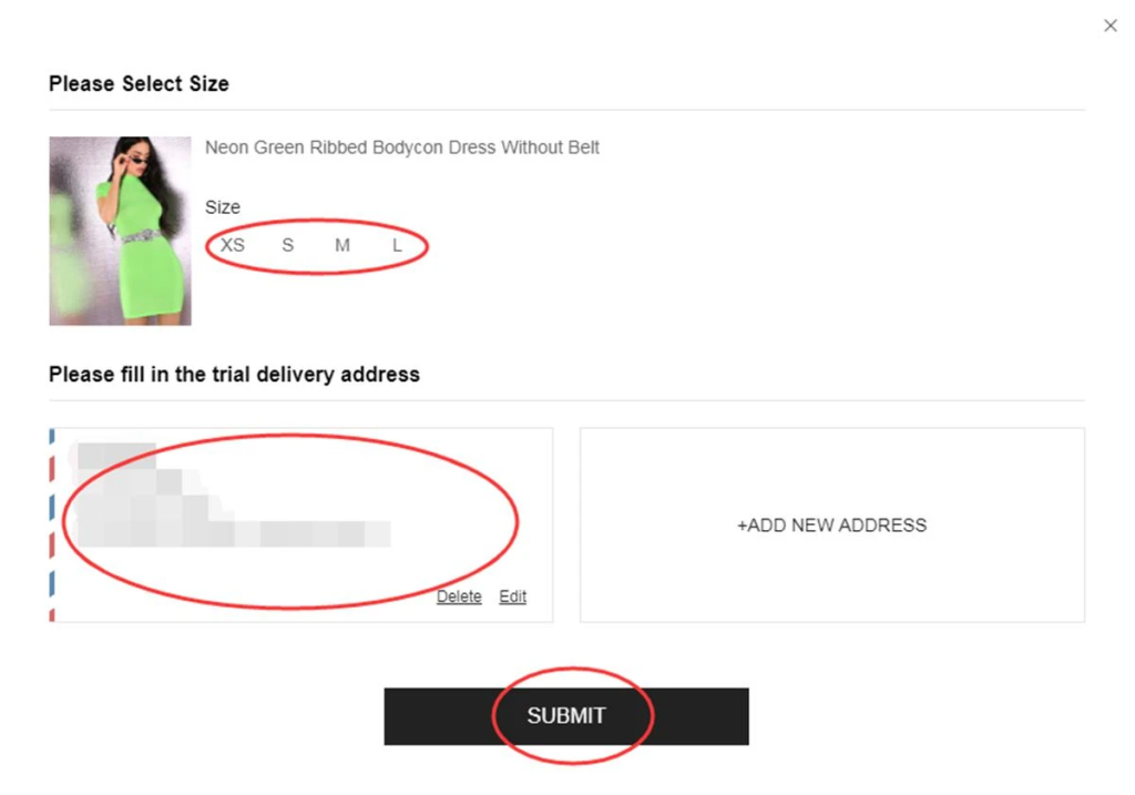 2. Selecione seu tamanho, preencha as informações do endereço de entrega e envie.