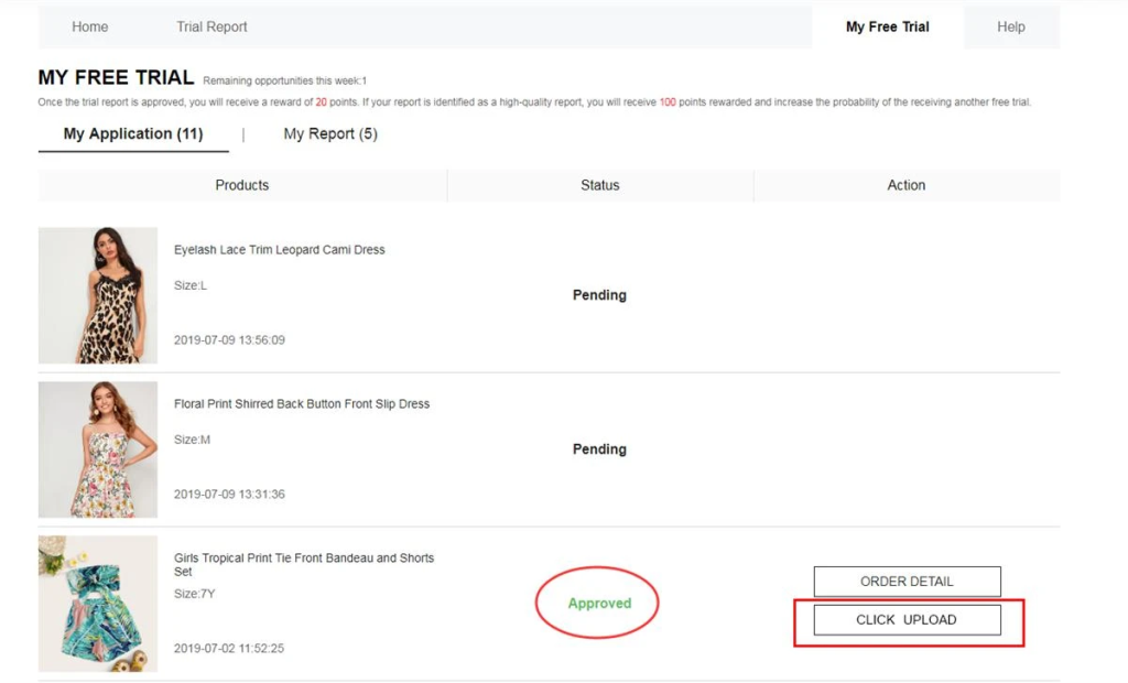 4. Seu pedido será emitido e enviado automaticamente assim que seu aplicativo de Prova gratuita for aprovado. Você pode clicar no botão ” Postar relatório ” na lista de pedidos para fazer a resenha assim que receber o item.